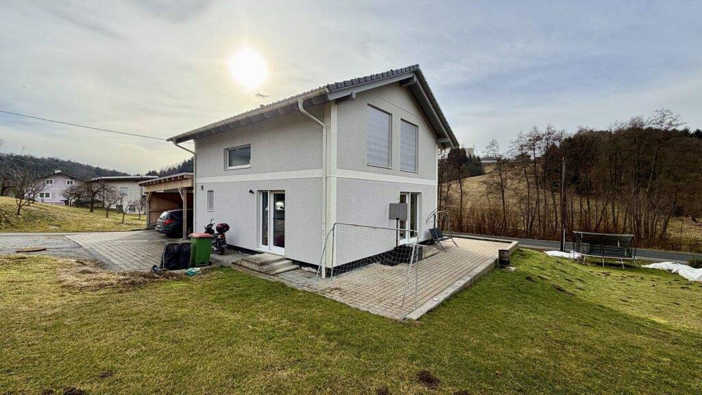 Das Doppelcarport schließt direkt ans Haus an und ermöglicht den witterungsgeschützten Zugang zur Haustüre. Direkt im Anschluss an das Carport befindet sich noch ein großzügiger Kellerersatz-/Abstellraum. Die Einfahrt bietet zusätzlich freie Abstellplätze und viel Platz für Besucher. Sehr gute Verkehrsanbindung und trotzdem absolute Ruhelage in Mitten einer Einfamilienhaus-Siedlung angrenzend an Landwirtschaftliche Freiflächen.