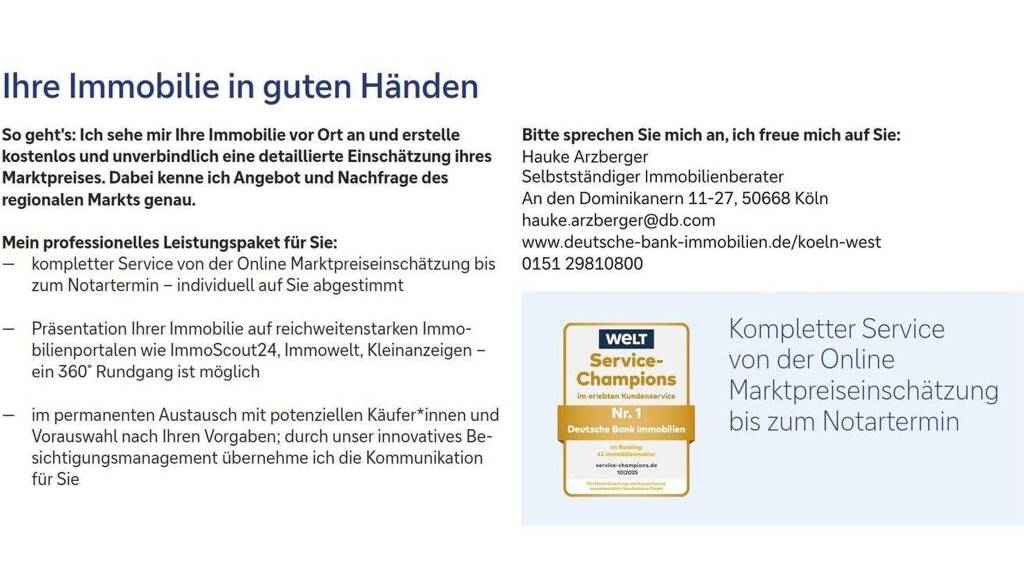 Rechtlicher Hinweis auf den Urheber des Exposés Hauke Arzberger Selbstständiger Immobilienberater E-Mail: hauke.arzberger@db.com Telefon: 0151 29810800