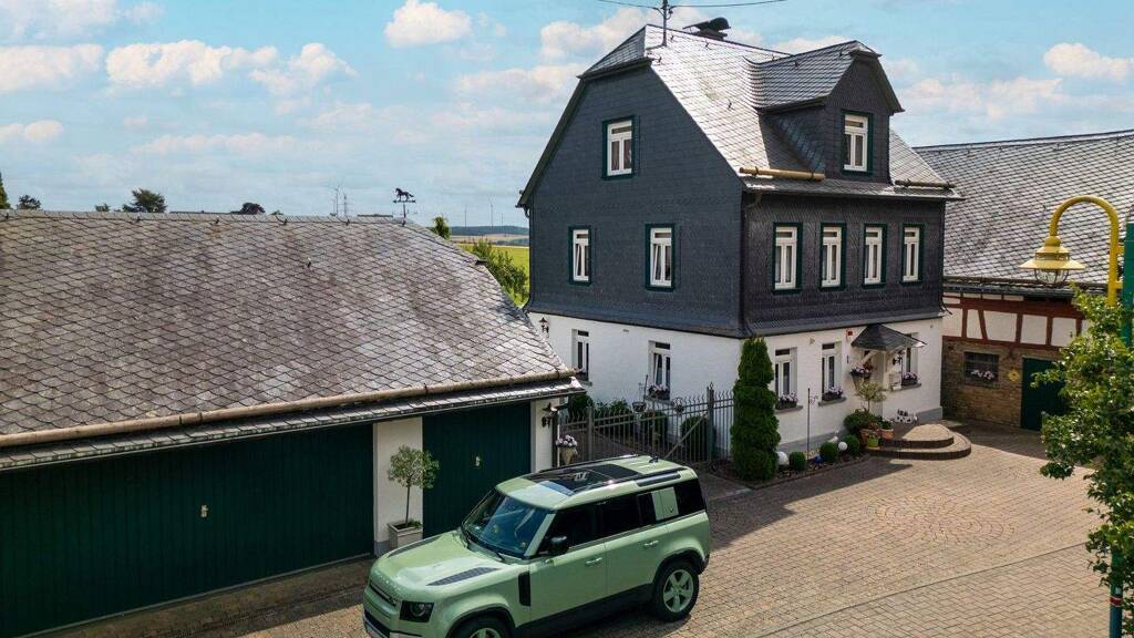 Die Immobilie besticht durch ihre hochwertige Ausstattung: Ein Walmdach mit altdeutscher Naturschieferdeckung, stilgerechte Fassadenverkleidung im Hunsrücker Bauernhausstil, ein Bruchsteinkeller, Sprossenfenster, Kassettentüren, Parekttböden, eine hochwertige Alarmanlage, eine massive Holztreppe sowie eine Ölheizung und eine 8.500 Liter fassende Zisterne zur Gartenbewässerung bieten eine solide und zugleich charmante Basis für Ihr neues Zuhause.