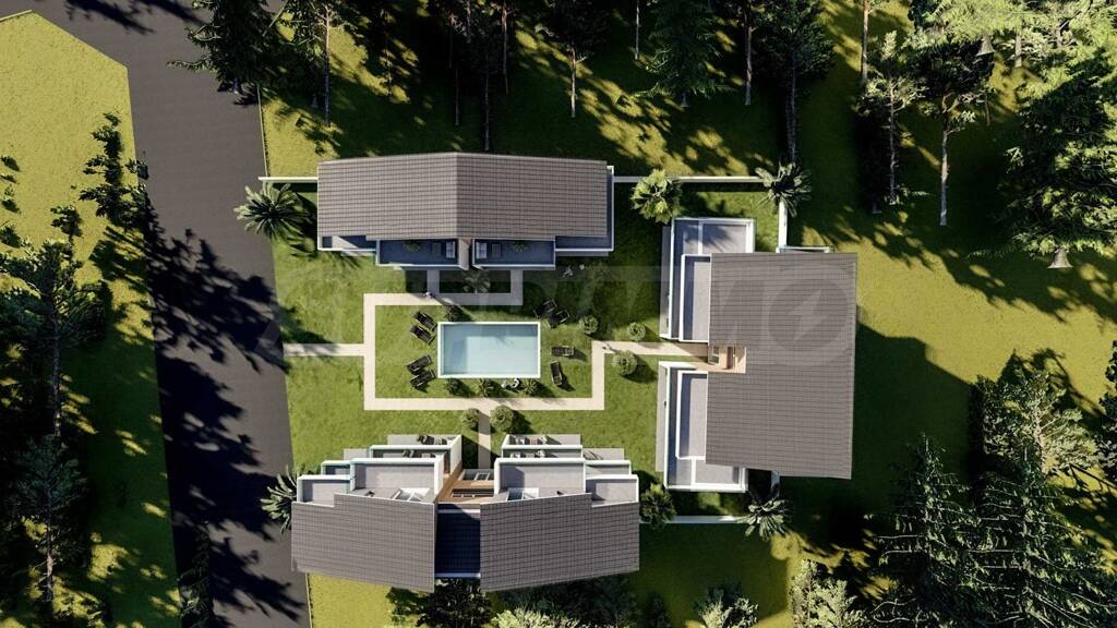 Die Anlage wurde mit Fokus auf Privatsphäre und Komfort konzipiert und besteht aus drei Gebäuden ? zwei mit je vier Wohnungen und einem mit zwei Wohnungen. Dies sorgt für ein ruhiges und harmonisches Wohnumfeld. Den Bewohnern steht ein Gemeinschaftspool zur Verfügung, der in den Sommermonaten für angenehme Abkühlung sorgt. Die Anlage bietet Zwei- und Dreizimmerwohnungen mit funktionalen Grundrissen, die auf die Bedürfnisse eines modernen Lebensstils zugeschnitten sind. Die Zweizimmerwohnungen befinden sich im Erdgeschoss und verfügen über Veranden und direkten Zugang zum Garten, während die Dreizimmerwohnungen sonnige Terrassen im ersten und zweiten Obergeschoss bieten.