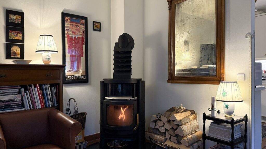 Hier stehen eine gemütliche Küche mit Schwedenofen, ein Essplatz, ein Wohnbereich, zwei Zimmer sowie ein Bad zur Verfügung. Besonders stimmungsvoll ist der Rundbogen, der Küche und Wohnbereich optisch voneinander trennt und gemeinsam mit dem Ofen eine sehr behagliche Wohnatmosphäre schafft.