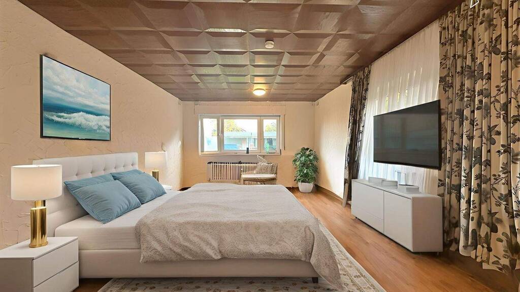 Die Immobilie verfügt insgesamt über 8 Zimmer und 4 Bäder, eine funktionale Einbauküche sowie ein Gäste-WC. Die Böden sind mit pflegeleichten Fliesen und Laminat ausgestattet - praktisch für Wohnen und Gewerbe gleichermaßen. Die letzte Modernisierung ist für 2025 vorgesehen, wodurch Investoren zeitnah von einer Wertsteigerung profitieren können.