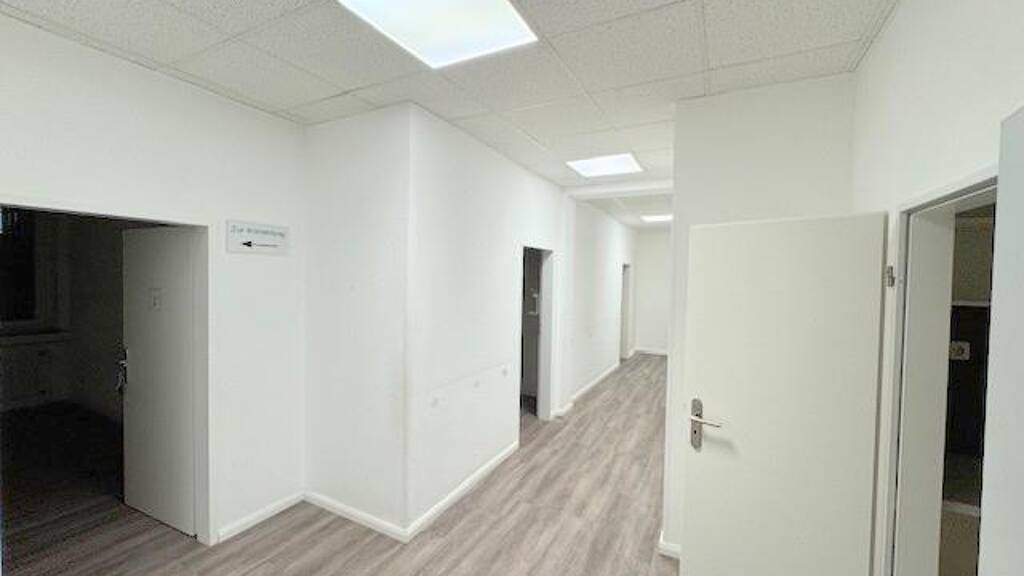 Die angebotene Gewerbefläche umfasst sechs unterschiedlich große Büro-/Praxisräume, die flexibel genutzt werden können, sowie einen großzügigen Empfangs- und Wartebereich. Getrennte WC´s für Herren und Damen, sowie ein separater Abstellraum bieten zusätzlichen Komfort. Eine kleine, praktische Teeküche ist ebenfalls vorhanden. Der Boden in der gesamten Fläche ist mit modernem Kunststoffbelag ausgestattet.