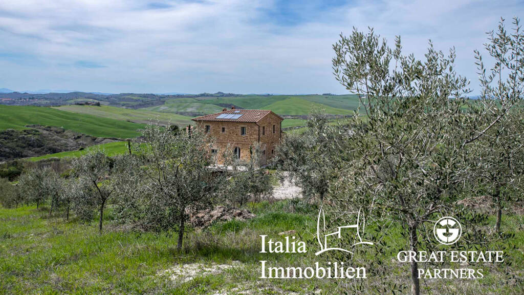Die Lage dieses rustikalen Bauernhauses ist wirklich schön und bietet einen atemberaubenden Blick auf die sanften Hügel der Crete Senesi. Die Bauarbeiten sind abgeschlossen, es fehlt nur noch die Installation der Heizungsanlage, die bereits für Photovoltaik und Sonnenkollektoren ausgelegt ist, und die Bepflanzung des Gartens.