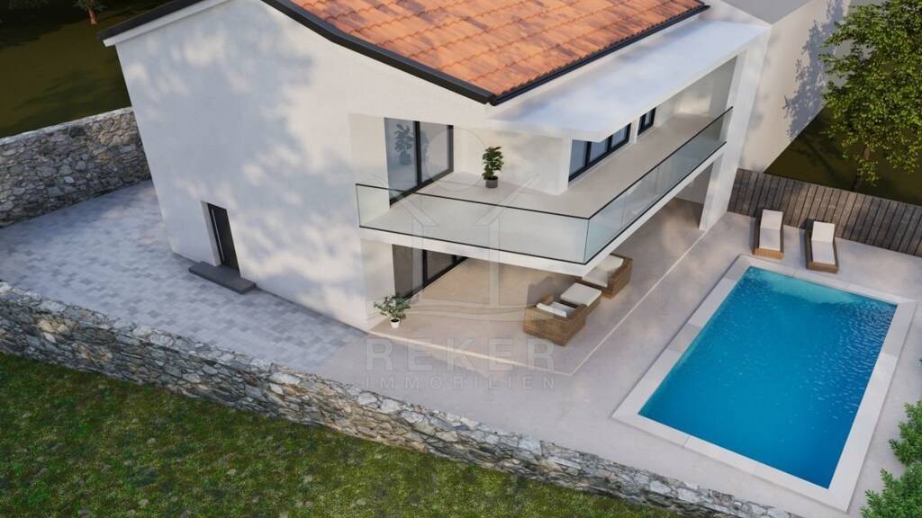 Neubau Doppelhaushälfte mit Pool und Meerblick auf der malerischen Insel Krk
