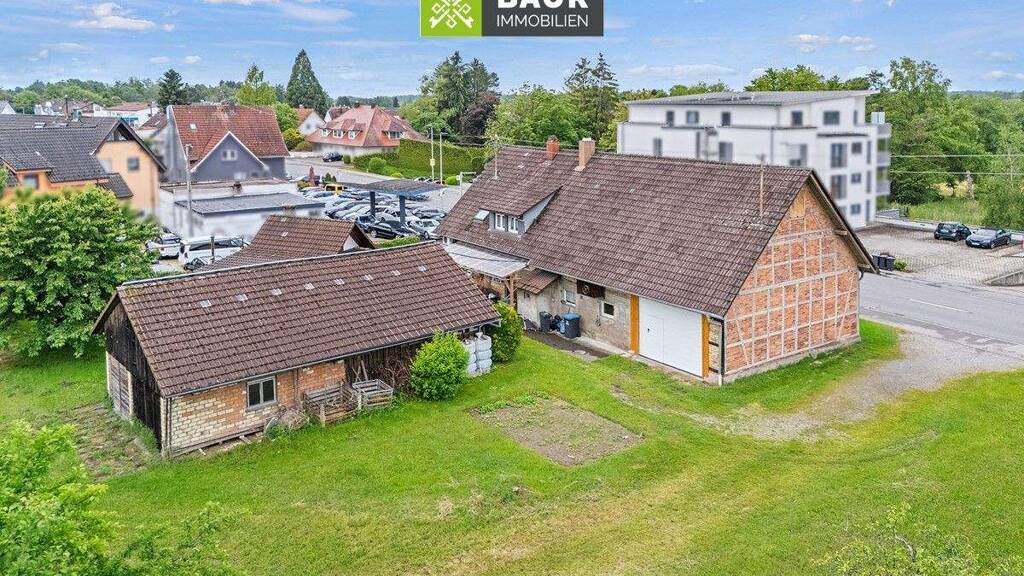In attraktiver und gut angebundener Lage von Meckenbeuren präsentiert sich dieses besondere Grundstück mit Bestandsimmobilie - ein Angebot, das vor allem durch seine beeindruckende Größe und das vielseitige Nutzungspotenzial überzeugt. Das ca. 1.759 m² große Grundstück bietet reichlich Raum für Visionen - sei es zur Weiterentwicklung, Teilbebauung oder als großzügiger Garten- und Freiraum. Besonders hervorzuheben ist die Anordnung des bestehenden Wohnhauses: Dieses befindet sich straßennah, wodurch sich der weitläufige Gartenbereich im rückwärtigen Teil des Grundstücks optimal nutzen lässt. Hier stehen derzeit eine kleine Scheune sowie ein Gartenhaus, die zusätzliche Nutzfläche bieten könnten. Die Bestandsimmobilie stammt vermutlich aus dem frühen 20. Jahrhundert und umfasst ein kleines Wohnhaus mit zwei getrennten Wohnungen von jeweils ca. 50 m². Jede Einheit verfügt über ein Schlafzimmer, ein Wohnzimmer, eine Küche sowie ein Tageslichtbad. Beide Wohnungen sind solide und langfristig vermietet - das Erdgeschoss seit 2005, das Obergeschoss seit 2014. Das Wohnhaus ist vollständig unterkellert. Beheizt wird das Gebäude über eine Öl-Zentralheizung aus dem Jahr 1993. Direkt an den Wohnteil angeschlossen befinden sich zwei Garagen sowie ein älterer Stadel, der weiteren Stauraum bietet oder je nach Bedarf anders genutzt werden könnte. Das großzügige Areal birgt interessantes Potenzial für zukünftige Bebauung, sei es für ein weiteres Wohnhaus, ein Mehrfamilienhaus oder auch eine Kombination aus Wohnen und Gartenidylle - selbstverständlich unter Berücksichtigung der geltenden baurechtlichen Vorgaben. Dieses Angebot richtet sich an Investoren, Projektentwickler oder Privatpersonen mit Weitblick, die das großflächige Grundstück als Chance erkennen - sei es zur Kapitalanlage, Weiterentwicklung oder zum Wohnen mit viel Freiraum.