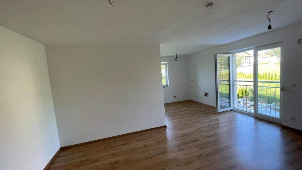 Die offene Raumgestaltung schafft ein einladendes Ambiente, das harmonisch mit den modernen Elementen der Wohnung harmoniert. Die großen Fenster sorgen für eine angenehme Lichtdurchflutung und eröffnen Ihnen einen Blick auf die malerische Umgebung von Moosbach. Hier können Sie sich in Ihren eigenen vier Wänden rundum wohlfühlen.