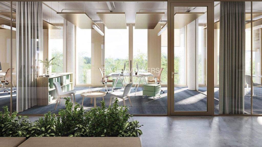 Der repräsentative Büroneubau verfügt über eine Bürofläche von ca. 12.000 m². Rund um drei begrünte Innenhöfe verteilen sich die Mietflächen auf fünf Geschosse. Die hervorragend ausgestatteten und flexibel nutzbaren Büroflächen zeichnen sich u. a. durch großzügige Raumhöhe und eine ausgezeichnete Belichtung aus. Ein effizientes Erschließungskonzept über drei separate Eingänge schafft in Kombination mit einem nachhaltigen Energiekonzept im gesamten Gebäude eine hohe Aufenthaltsqualität mit kurzen Wegen. Individuelle Raumkonzepte vom Großraumbüro, über Gruppenbüros bis hin zum Einzelbüro lassen sich hier vielfältige Arbeitswelten kreieren, die Inspiration und Motivation fördern. Im Erdgeschoss sind ein exklusiver Fitnessbereich und ein modernes Gastrokonzept vorgesehen. Das Objekt bietet ausreichend Stellplätze in der Tiefgarage (insgesamt 100) und im Außenbereich (insgesamt 54). Eine umsatzsteuerfreie Anmietung ist darstellbar.