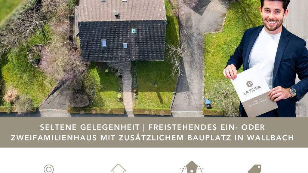 Zum Verkauf steht ein freistehendes Ein- oder Zweifamilienhaus mit zwei Garagen und großzügigem Garten in Wallbach. Das insgesamt 1.486 m² große Grundstück eröffnet nicht nur viel Raum zum Leben, sondern bietet mit einem zusätzlichen Bauplatz von über 600 m² attraktive Möglichkeiten für private wie auch unternehmerische Bauvorhaben.