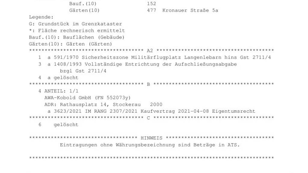 Das Grundstück befindet sich in sehr ruhiger Lage von Tulln an der Donau. Das darauf befindliche Gebäude ist ein ehemaliges Bordell, das jedoch abbruchreif ist.