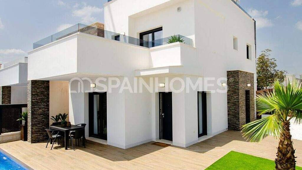 Kurzbeschreibung Hochmoderne, freistehende Villen mit privatem Pool und Grünflächen befinden sich in Orihuela, Alicante, die auf einem 200 qm großen Grundstück stehen, bieten einen Panoramablick auf den Golfplatz. Objekt Freistehende Villen mit Golfplatzblick in Bigastro, Orihuela Costa