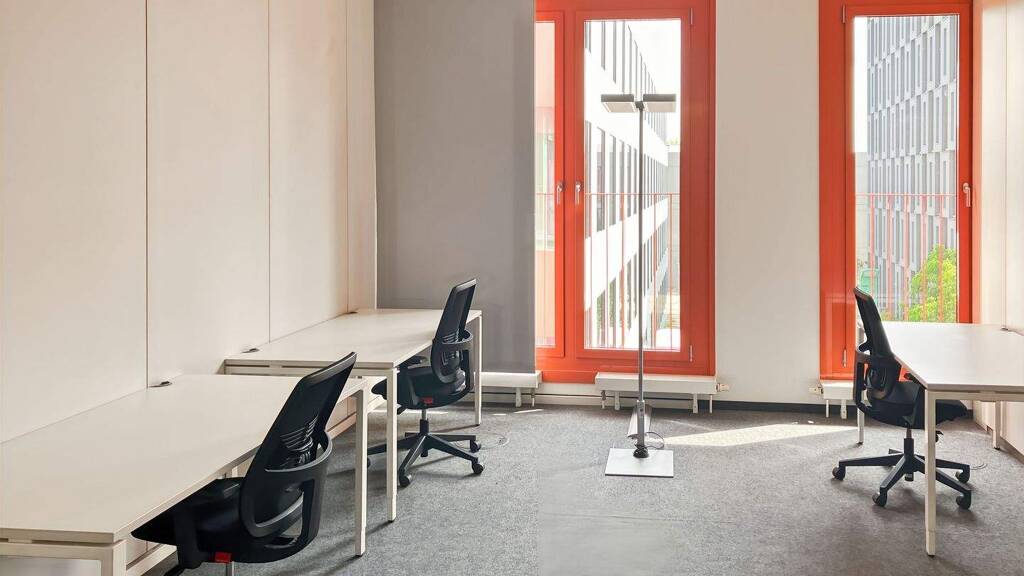 Erhalten Sie Zugang zu einem hellen und inspirierenden Büroraum, der darauf ausgelegt ist, Teams von 5 Personen optimal bei ihrer Arbeit zu unterstützen.