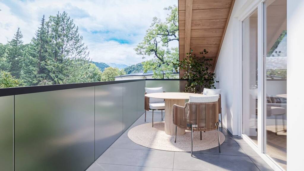 Wohnen mit Panoramablick: Naturnähe wird hier großgeschrieben - dank großer Fensterfronten genießen Sie nicht nur helle Räume, sondern auch einen herrlichen Ausblick auf die umliegende Natur und den imposanten Untersberg. Besonders hervorzuheben sind die großzügigen Terrassen mit bis zu 33 m² sowie die Wintergärten mit einer beeindruckenden Raumhöhe von bis zu 3,35 Metern und bodentiefen Fenstern.