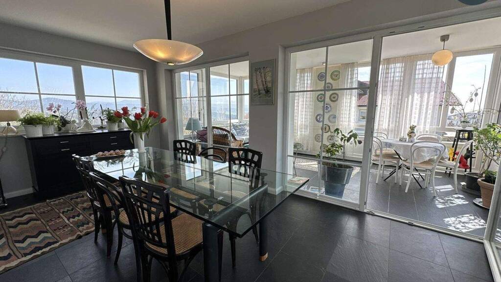 Besonders hervorzuheben ist die spektakuläre Aussicht, die sich von jeder Etage aus bietet - genießen Sie wundervolle Sonnenaufgänge direkt von Ihrem Zuhause. Von hier blicken Sie weit über die umliegende Landschaft und genießen bei klarer Sicht ein Panorama, das zu jeder Tageszeit beeindruckt.