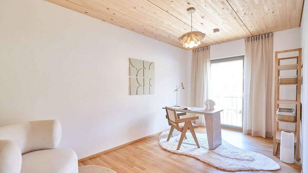 -Wände und Decken in sichtbarer Massivholzbauweise -Verzicht auf Lösungsmittel und Kunststoffe -Klimafreundlicher Neubau (Effizienzhaus?40) mit QNG-Zertifizierung -Top-Qualität - vorgefertigt, sichtbar, nervenschonend -Keine Kompromisse dank realgeteilten Grundstücken -Direkte Feldrandlage mit unverbautem Ausblick -Dreifachverglaste Holz-Alu-Fenster -Luft-Wasser-Wärmepumpe -Fußbodenheizung mit Einzelraumsteuerung -Photovoltaikanlagen auf den Dächern -Panoramafenster im Erdgeschoss -Flachdach mit sonniger Dachterrasse -Inklusive 1x Stellplatz und 1x Carport