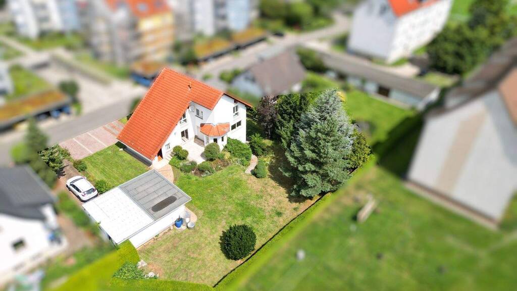 Dieses Architektenhaus, das in solider Massivbauweise errichtet wurde, überzeugt durch sein durchdachtes Raumkonzept, die erstklassige Ausstattung und die attraktive Lage. Auf einem großzügigen Grundstück von etwa 856 m² stehen Ihnen rund 200 m² Wohnfläche zur Verfügung, die ein großzügiges und komfortables Wohngefühl vermitteln. Weitere praktische Flächen im Keller erweitern das Raumangebot ideal.