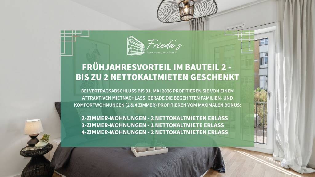 Bei den Bildern handelt es sich um unverbindliche Visualisierungen und Bilder der Musterwohnung. Gerne können Sie sich im Zuge einer Besichtigung selbst vom FRIEDA'S überzeugen.