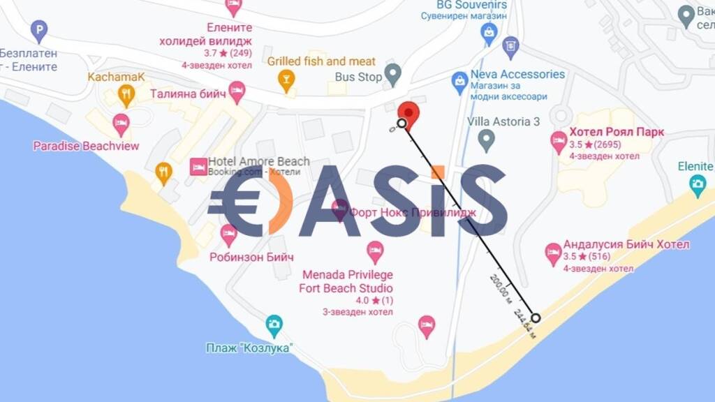 Ein Penthouse im fünften Stock des Komplexes Villa Astoria 5 in einer ruhigen, malerischen Lage am Schwarzen Meer - in K. k. Elenite, Region Burgas, Bulgarien - wird zum Kauf angeboten. Apartment mit Bergblick 200 Meter vom Meer entfernt.