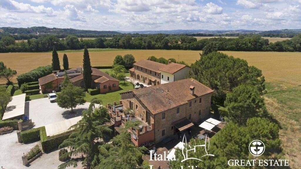 Nicht weit von Perugia entfernt, in der Stadt der Kunstkeramik Deruta am Lauf des Tibers, befindet sich dieses schöne Landgut, das in 3 Bauernhäuser aufgeteilt ist, die von einem schönen und gepflegten Garten umgeben sind, in dem sich ein großer Swimmingpool von 16x7 m befindet. Ein Sportgelände mit Fußballplatz, Volleyballplatz, Fußballfeld mit Nachtbeleuchtung, 2 landwirtschaftliche Nebengebäude und 122 ha Land sind ebenfalls vorhanden.