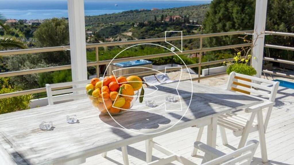 Diese Villa ist auf einem Hügel mit unverbautem Meerblick in der Agios Tychonas, nur 15 Minuten vom Meer entfernt, in der Nähe von allen Annehmlichkeiten.