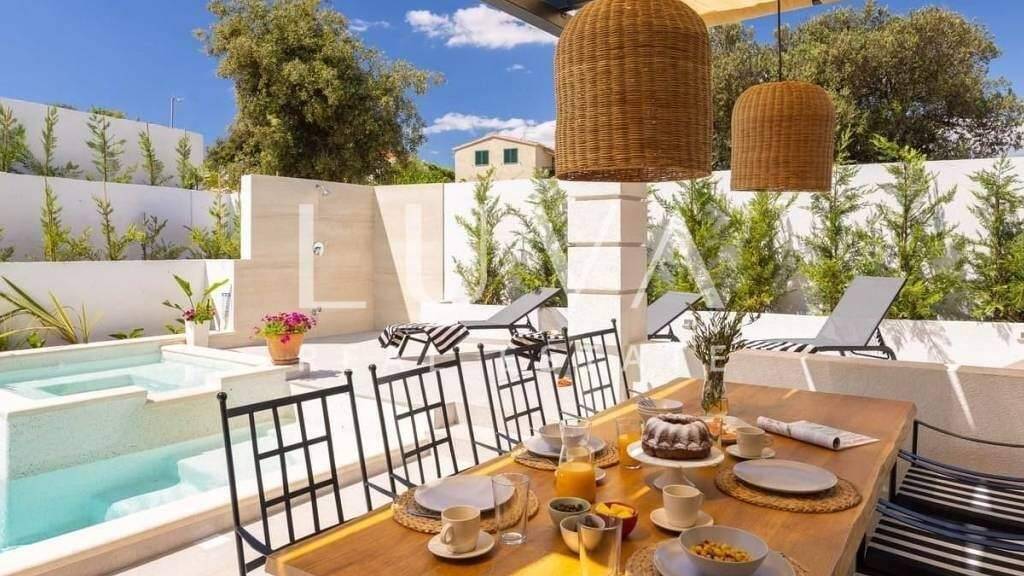 Im ruhigen dalmatinischen Ort Razanj, unweit von Rogoznica, befindet sich eine neu erbaute moderne Villa (2025), die direkt am Meer liegt. Mit ihrer Lage und Architektur vereint sie luxuriöses Design und Komfort mit einem einzigartigen mediterranen Ambiente. Das Grundstück von 630 m² ist vollständig eingezäunt und bietet Ruhe, Sicherheit und absolute Privatsphäre, während sich die Villa selbst über 250 m² Wohnfläche erstreckt.