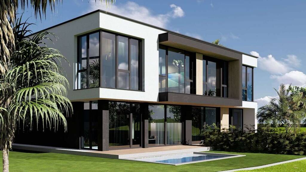 Wir bieten zum Verkauf ein Einfamilienhaus im modernen Baustil an, das Teil einer neuen geschlossenen Ferienanlage ist, die aus 37 Wohngebäuden besteht, die in einzelne Innenhöfe unterteilt sind.