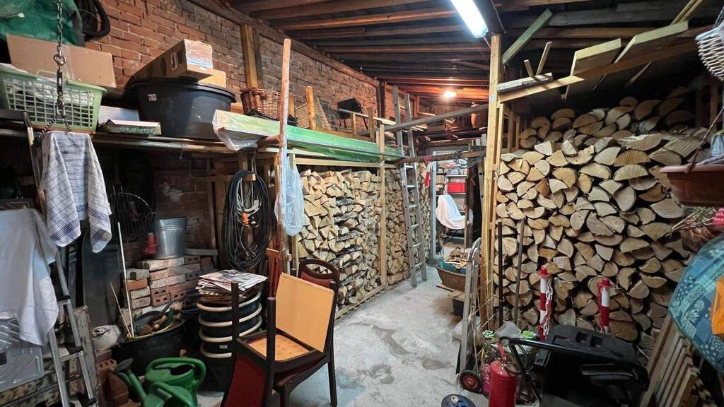 Das Gesamtbild des Hauses wird durch mehrere Außenbereiche ergänzt. Eine kleine Garage mit integrierter Werkstatt bietet praktischen Stauraum und Platz für handwerkliche Tätigkeiten. Der kleine Garten verfügt über einen eigenen Brunnen und lädt zum Entspannen im Grünen ein. Zusätzlich sorgen ein Balkon sowie eine gemütliche, überdachte Terrasse für weitere Rückzugsmöglichkeiten im Freien.