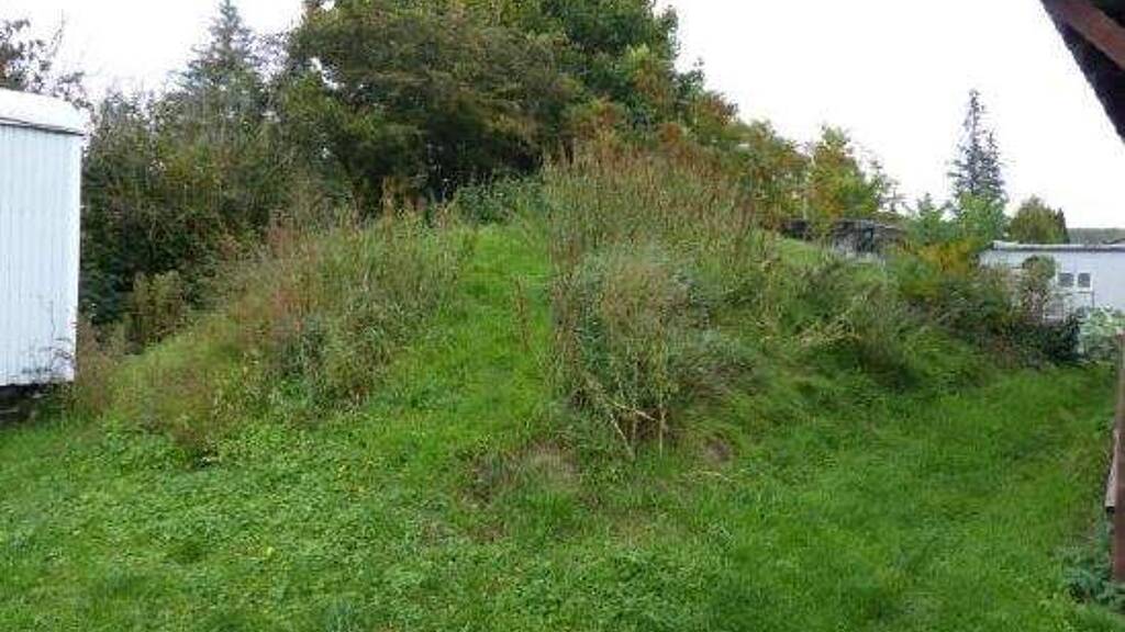 Im nordöstlichen Grundstücksbereich befindet sich eine bewachsene, halbkuppelartige Erhebung mit einem Durchmesser von mehreren Metern, deren Herkunft und Bestandteile unbekannt sind. Entlang des straßenseitigen Grundstücksverlaufs ist das Verkaufsobjekt mit Hecken, Sträuchern und Bäumen bewachsen. Die Garage des südlich gelegenen Grundstückes steht vermutlich auf der Grundstücksgrenze des Verkaufsobjektes.