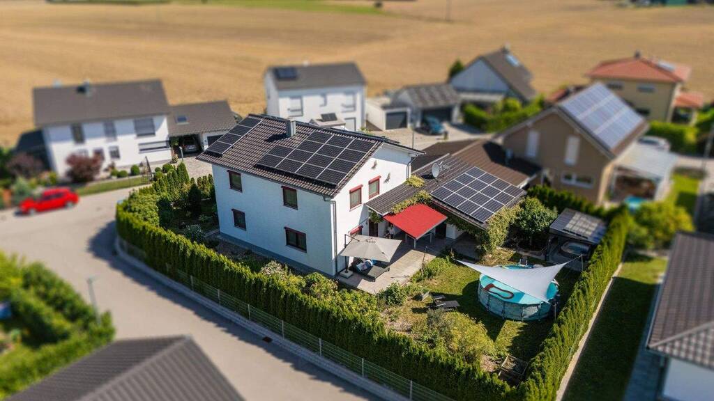 - Photovoltaik-Anlage auf dem Dach (9,9 kWp) + 5,28 kWp auf dem Garagendach