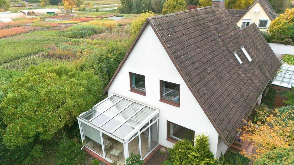Dieses einladende Einfamilienhaus aus dem Jahr 1965 liegt im Außenbereich von Rellingen und vereint ländliche Ruhe mit der Nähe zur Metropolregion Hamburg. Auf einem großzügigen Grundstück von rund 845 m² genießen Sie viel Platz, Privatsphäre und ein idyllisches Umfeld – ideal für Familien oder Paare, die naturnah wohnen und dennoch gut angebunden sein möchten. Die rund 115 m² Wohnfläche verteilen sich auf zwei Ebenen und überzeugen durch eine gute Raumaufteilung. Im Erdgeschoss erwartet Sie ein heller Wohn- und Essbereich, der im Jahr 2002 um einen gemütlichen Wintergarten erweitert worden ist. Neben der Küche befinden sich noch zwei Badezimmer im Erdgeschoss sowie ein schönes Schlafzimmer und ein weiteres kleines Zimmer. Im Obergeschoss liegt eine gemütlich ausgebaute Wohnung mit Wohn- und Esszimmer, Küche und Duschbad. Das Schlafzimmer im Obergeschoss befindet sich im ausgebauten Dach über der Garage und ist nicht in der Wohnfläche enthalten. Ein Keller und eine Garage mit angebautem Carport runden das Angebot ab. Das Haus präsentiert sich in einem gepflegten, aber sanierungsbedürftigen Zustand, so entspricht es aus energetischer Sicht nicht dem heutigen Standard. Umgeben von Baumschulfeldern bietet der eingewachsene Garten einen schönen Rückzugsort zum Entspannen. Der beheizte Wintergarten, die überdachte Veranda oder auch die sonnige Terrasse hinter dem Haus laden dazu bei jedem Wetter ein. Über einen traumhaften Weg über die Felder ist der beliebte Wolnysee in wenigen Gehminuten zu erreicht. Ein Paradies für Natur- und Hundeliebhaber.