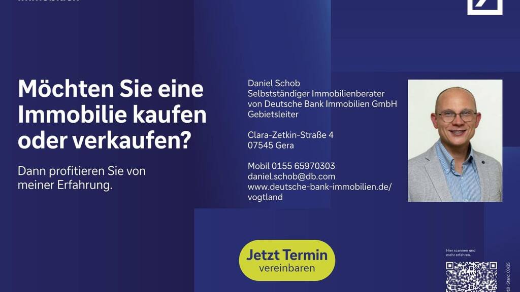 Rechtlicher Hinweis auf den Urheber des Exposés Daniel Schob Selbstständiger Immobilienberater Nordsiedlung 41 06712 Zeitz E-Mail: daniel.schob@db.com Telefon: 0155 65970303