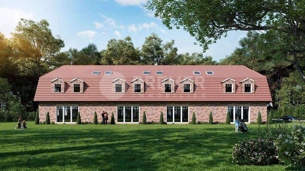 Dieses klassische Mittelreihenhaus wird auf einem idyllisch gelegenen Eigentumsgrundstück im alten Ortskern von Häcklingen errichtet. Das Haus verfügt über einen Grundstücksanteil von 175 m² zuzüglich der Gemeinschaftsfläche des Gesamtgrundstücks in der Größe von 1276 m². Die Wohnfläche beträgt ca. 135 m², verteilt auf zwei Etagen und vier Zimmer. Sie betreten das Haus über den geräumigen Flur. Links finden Sie die Küche und den Abstellraum. Das Gäste-WC und der Hauswirtschaftsraum liegen auf der rechten Seite. Durch eine Doppelflügeltür betreten Sie das großzügige Wohn-Esszimmer. Von hier haben Sie Zugang zur Terrasse und zum Garten mit Südausrichtung. Im Hauswirtschaftsraum ist Platz für die Haustechnik inklusive der Erdwärmeheizung. Ein separater Abstellraum mit 6 m² bietet weitere Stellfläche, außerdem ist hier Platz für Waschmaschine und Trockner. Das Obergeschoss verfügt über drei geräumige Zimmer und ein Tageslichtbad mit Badewanne und Walk-In-Dusche. Im Elternschlafzimmer ist ein Ankleidezimmer integriert. Den Dachboden erreichen Sie über eine Einschubleiter, optional ist der Einbau einer Treppe möglich.