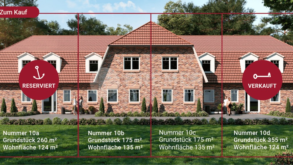 Die neu entstehende Eigentümergemeinschaft umfasst 4 Reihenhäuser, die alle zum Verkauf angeboten werden.