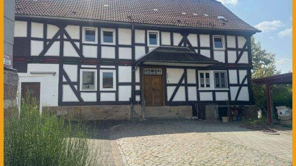 Hier können Sie kurzfristig einziehen! Das Fachwerkhaus wurde ursprünglich im Jahr 1751 erbaut und verfügt heute über rund 150m² Wohnfläche, auf zwei Etagen. Das Erdgeschoss gliedert sich auf in ein geräumiges Wohnzimmer mit freigelegten Balken, ein Schlafzimmer, zwei Abstellräume, einen Hauswirtschaftsraum mit direktem Zugang in die Tenne, eine Küche und ein fast neuwertiges helles Badezimmer mit Dusche und WC aus dem Jahr 2018. Das Obergeschoss verfügt über drei Schlafzimmer, einen Abstellraum und ein weiteres Badezimmer aus den 50er Jahren. Das Dachgeschoss des Hauses ist zudem ausbaufähig oder kann aktuell zum Lagern und Abstellen verwendet werden, ebenso die kleine Tenne, die im Erdgeschoss ideal für Zweiräder etc. geeignet ist. Unter dem Haus befindet sich ein Kriechkeller für Ihre Vorräte. Für Ihre PKW stehen Ihnen direkt vor dem Haus Stellplätze auf dem Hof zur Verfügung.