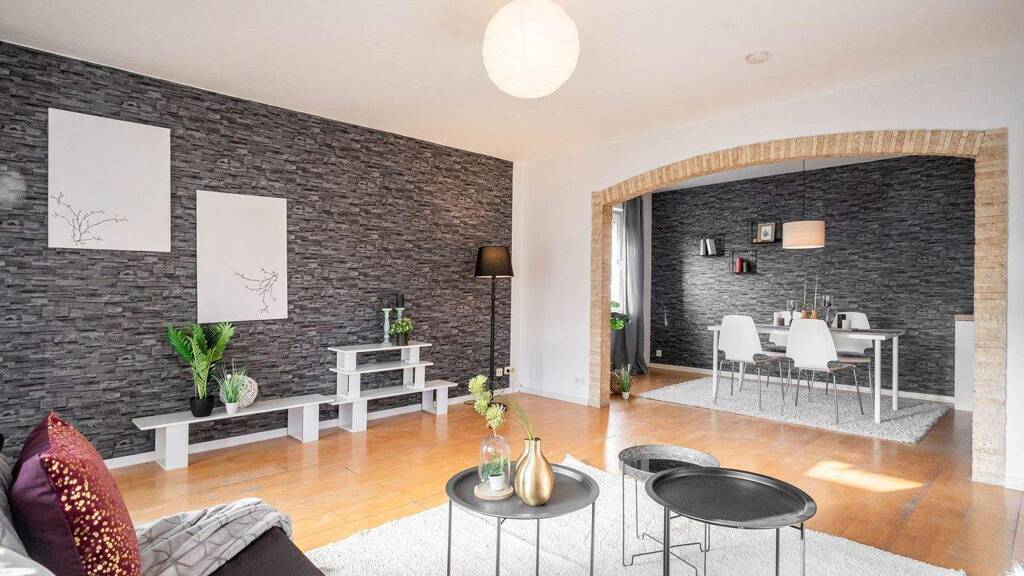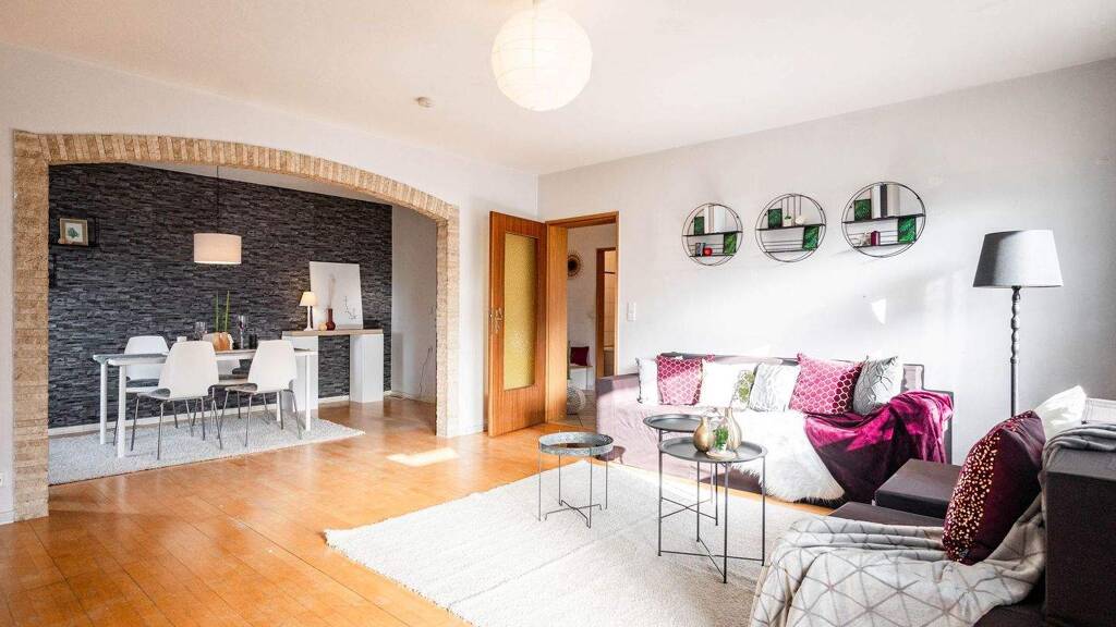 Über das gepflegte Treppenhaus gelangen Sie in die gemütliche Wohnung. Hier verteilen sich die rund 95 m² Wohnfläche auf eine einladende Eingangsdiele, eine geräumige Küche, ein Badezimmer mit Duschwanne sowie ein gemütliches Wohn- und Schlafzimmer - beide jeweils mit direktem Balkonzugang. Hier genießen Sie entspannte Abendstunden mit Ausblick. Das Kinderzimmer und der als weiteres Arbeitszimmer abtrennbare Essbereich sorgen für eine ideale Nutzbarkeit. Ein Duplex-Pkw-Stellplatz rundet das Angebot ab (die Bodenplatte ist reparaturbedürftig). Der gemeinschaftliche Garten kann ebenfalls mit genutzt werden.