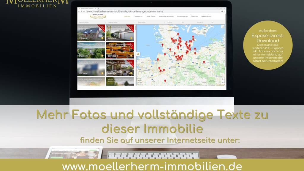 EXPOSÈ-DIREKT-DOWNLOAD Als Qualitätsmakler für Norddeutschland bieten wir Ihnen einen Direkt-Exposé-Download auf unserer Homepage. Link zum Objekt auf unserer Homepage: www.moellerherm-immobilien.de/objekt/ID-MI-14282