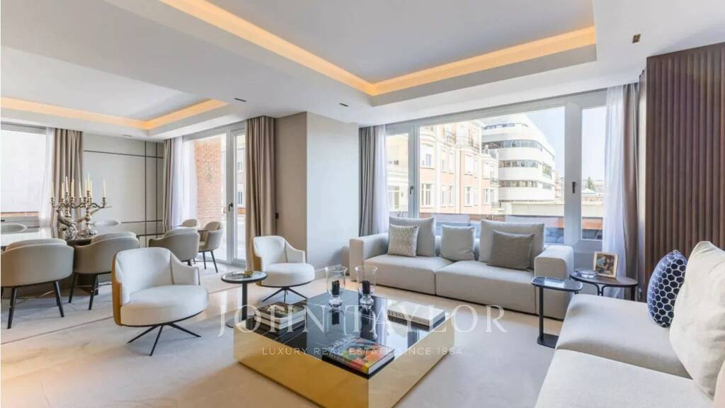 In einer der besten Gegenden Madrids gelegen, kombiniert diese außergewöhnliche Immobilie internationales, modernes Design mit einer hochwertigen Ausstattung. Sie wurde von einem renommierten Innenarchitekturbüro entworfen und verfügt über edle Materialien wie Dolomitmarmor und natürliches Eichenholz, die der Wohnung einen einzigartigen Charakter verleihen.