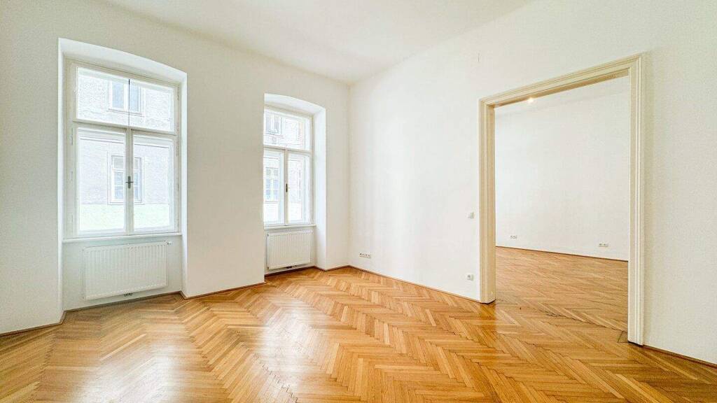 Im Herzen von Mariahilf, nur wenige Schritte von der Mariahilfer Straße und dem Haus des Meeres entfernt, präsentiert sich dieses stilvolle Altbaujuwel als perfekte Symbiose aus klassischer Wiener Wohnkultur und zeitgemäßem Wohnkomfort. Bereits beim Eintreten empfängt Sie ein äußerst großzügig gestalteter Vorraum, der mit seiner Weitläufigkeit und den exzellenten Stauraummöglichkeiten den eleganten Charakter der Wohnung unterstreicht. Hier beginnt das Gefühl von Großzügigkeit, das sich durch die gesamte Immobilie zieht. Zur Linken des Eingangsbereichs befindet sich das separat gelegene WC, welches mit einem eigenen Handwaschbecken ausgestattet ist - ein diskretes Detail, das Komfort und Funktionalität ideal verbindet. Rechter Hand gelangt man in die separate Küche, die nicht nur durch ihre vollständige Ausstattung überzeugt, sondern auch durch ein Fenster mit Blick in das ruhige Stiegenhaus. Der Küchenbereich bietet ausreichend Platz zum Kochen und Verweilen und ist der ideale Ort für Genuss und Gastlichkeit. Direkt an die Küche anschließend eröffnet sich das stilvolle Badezimmer, das mit einer hochwertigen Dusche, einem eleganten Waschtisch sowie einem weiteren Fenster ins Stiegenhaus ausgestattet ist. Dadurch wird nicht nur für optimale Belüftung gesorgt, sondern auch für angenehmes, natürliches Tageslicht - ein echtes Highlight unter den Altbau-Badezimmern. Das Herzstück der Wohnung bildet zweifellos das großzügige Wohnzimmer. Lichtdurchflutet durch klassische Kastenstockfenster und verbunden durch originale Flügeltüren, vermittelt dieser Raum ein Gefühl von Weite und Behaglichkeit. Die hohen Decken und der gepflegte Parkettboden verstärken den typischen Altbau-Charme, der in dieser Wohnung stilvoll in Szene gesetzt wird. Das Schlafzimmer, das sowohl über das Wohnzimmer als auch direkt von der Küche aus zugänglich ist, schafft einen angenehmen Rückzugsort mit wohnlicher Atmosphäre. Auch hier setzt sich der hochwertige Parkettboden fort und unterstreicht den stimmigen Gesamteindruck der Immobilie.