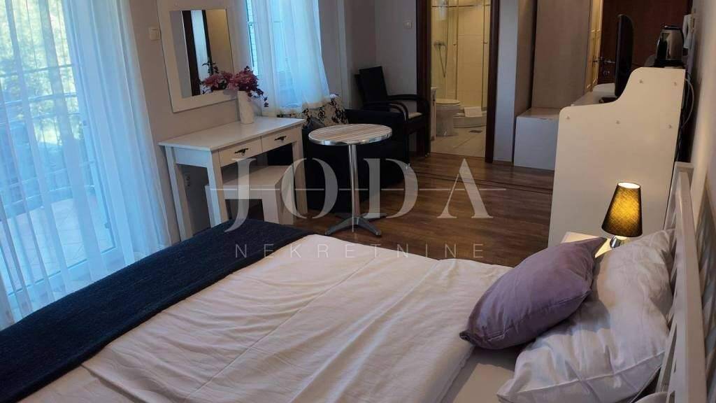 Zusätzlich verfügt die Immobilie über eine großzügige Taverne, die als Gemeinschaftsraum für Gäste genutzt oder nach den Wünschen des Investors umgestaltet werden kann. Der gepflegte Außenbereich bietet einen Pool mit Sonnendeck, der hohen Komfort und Privatsphäre gewährleistet. Außerdem ist ein eigener Parkplatz vorhanden, was im Tourismussektor einen entscheidenden Vorteil darstellt.