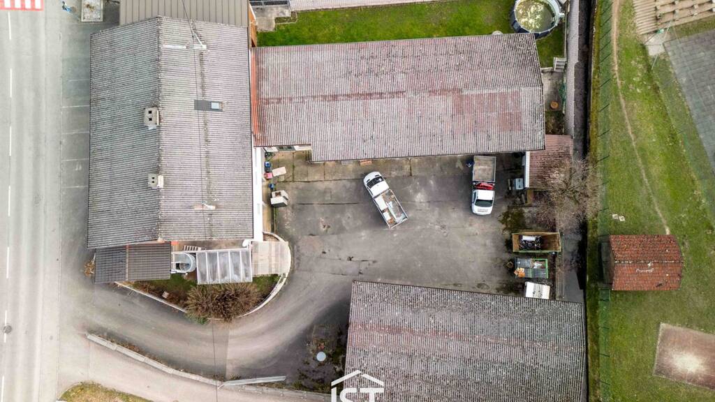 In zentrumsnaher Lage befindet sich diese gemischt genutzte Liegenschaft, die über Jahrzehnte hinweg als Standort für einen Installations- und Brunnenbaubetrieb diente. Die Immobilie vereint großzügige Gewerbeflächen mit einer vollwertigen Wohneinheit und eröffnet damit vielfältige Nutzungsmöglichkeiten – insbesondere für Unternehmer, Handwerker oder Käufer, die Wohnen und Arbeiten an einem Standort kombinieren möchten.