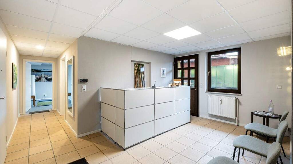 Zum Verkauf steht ein gepflegtes Mehrfamilienhaus aus dem Baujahr 1988. Es verfügt über insgesamt 13 Wohneinheiten, 1 Physio-Praxis sowie eine Schreinerei im rückwärtigen Bereich. Die vermietbare Wohnfläche beträgt ca. 830 m². Die beiden Gewerbeflächen messen insgesamt ca. 303 m². Das Haus ist vollständig unterkellert. Hier befinden sich neben den Kellerabstellräumen noch der Heizkeller sowie 5 Garagen mit Doppelparken, somit insgesamt 10 Stellplätze.