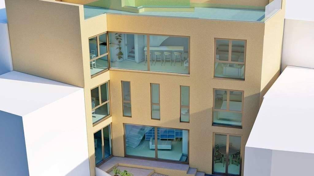 Alternativ besteht die Möglichkeit eines modernen Hauses mit 160 m Wohnfläche, das sich über drei Etagen erstreckt und eine Taverne, eine Eingangshalle mit Technikraum und Waschküche sowie ein Hauptschlafzimmer mit Bad umfasst. Im ersten Obergeschoss befinden sich zwei Schlafzimmer mit zwei modernen Badezimmern und einem Gäste-WC, während das zweite Obergeschoss ein großes Wohnzimmer, ein Esszimmer mit Bar, eine geräumige Küche und Zugang zu einer Dachterrasse mit herrlichem Meerblick bietet.