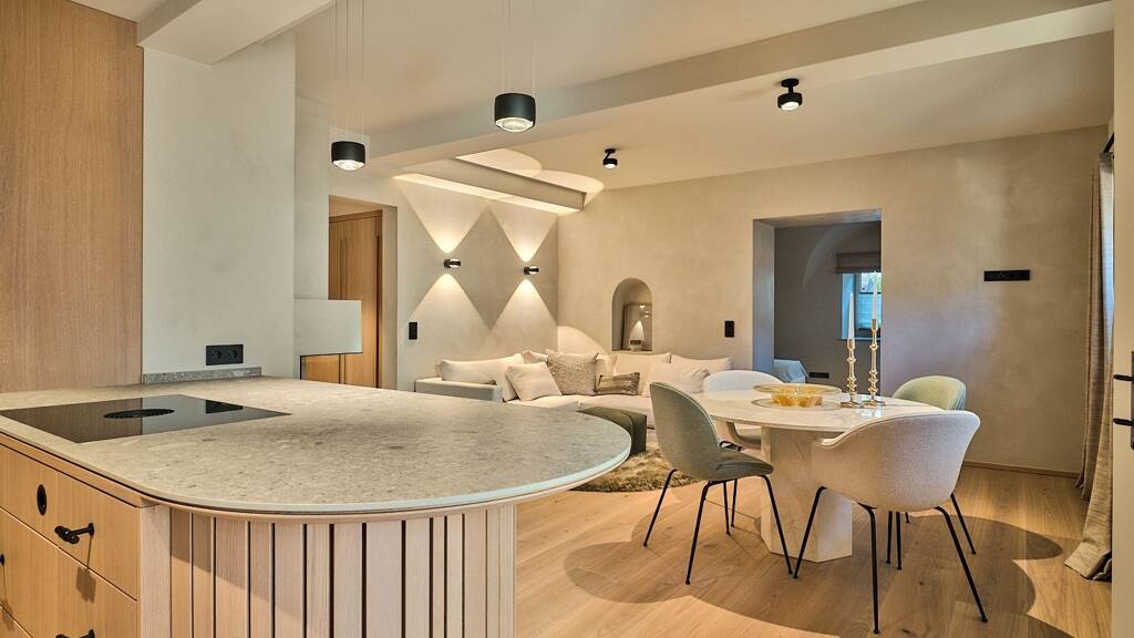 Im Herzen der Gamsstadt, nur wenige Schritte von der charmanten Fußgängerzone und der weltberühmten Hahnenkammabfahrt entfernt, befindet sich diese luxuriös sanierte Wohnung in einem historischen Mehrfamilienhaus mit nur sieben Wohneinheiten. Das Gebäude verbindet traditionellen Charakter mit modernstem Wohnkomfort - inklusive Aufzug und innovativem Bussystem für intelligente Haussteuerung.
