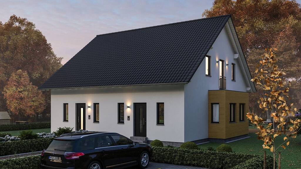 Unser Doppelhaus TwinStyle 11.01 S mit Satteldach punktet mit durchdachter Raumaufteilung. Die Doppelhaushälfte mit insgesamt etwa 115 m² Nettogrundfläche ist im Erdgeschoss offengehalten, Wohn-, Ess- und Kochbereich verschmelzen zu einer harmonischen Einheit. Im Obergeschoss liegen sich zwei Schlafzimmer gegenüber, dazwischen das gemeinsame Badezimmer. Auf zwei Ebenen überzeugt dieses Doppelhaus nicht nur durch seine raffinierten Details, sondern auch durch seine Energieeffizienz. Dank modernen Wärmeschutzes und Dreifachverglasung der Fenster bleiben die Nebenkosten niedrig. Unser TwinStyle 11.01 S bietet Raum für individuelle Gestaltungsmöglichkeiten, um Wohnträumen den perfekten Raum zu geben.