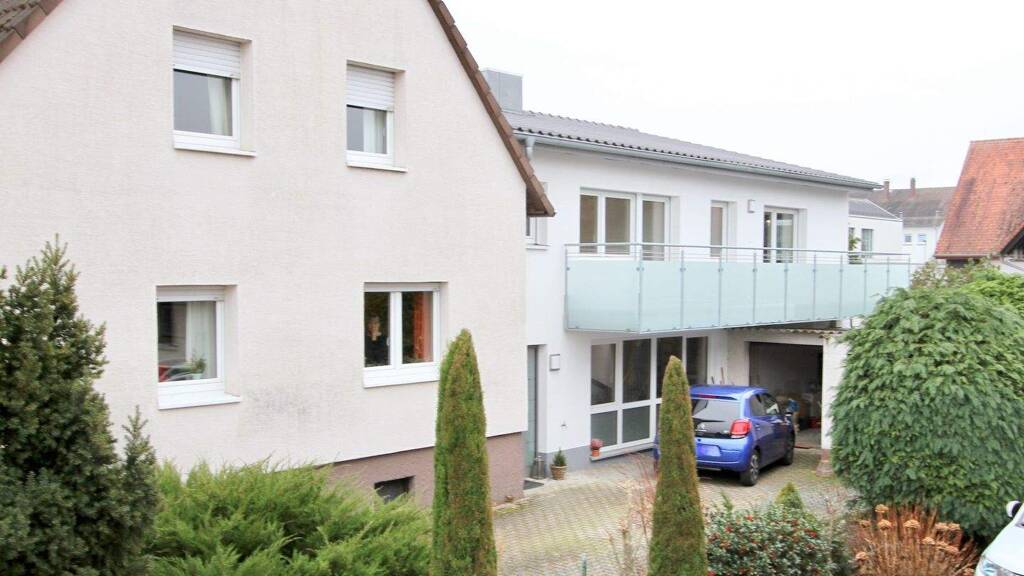 Das ursprünglich im Jahr 1952 errichtete Vorderhaus wurde 1972 durch den Ausbau des direkt angrenzenden Nebengebäudes erweitert. Beide Wohneinheiten sind über einen gemeinsamen Hauseingang erreichbar, verfügen jedoch über klar voneinander getrennte Abschlüsse und separate Zugänge. Zwei Garagen sowie ein Schuppen im hinteren Grundstücksbereich ergänzen das Angebot sinnvoll.