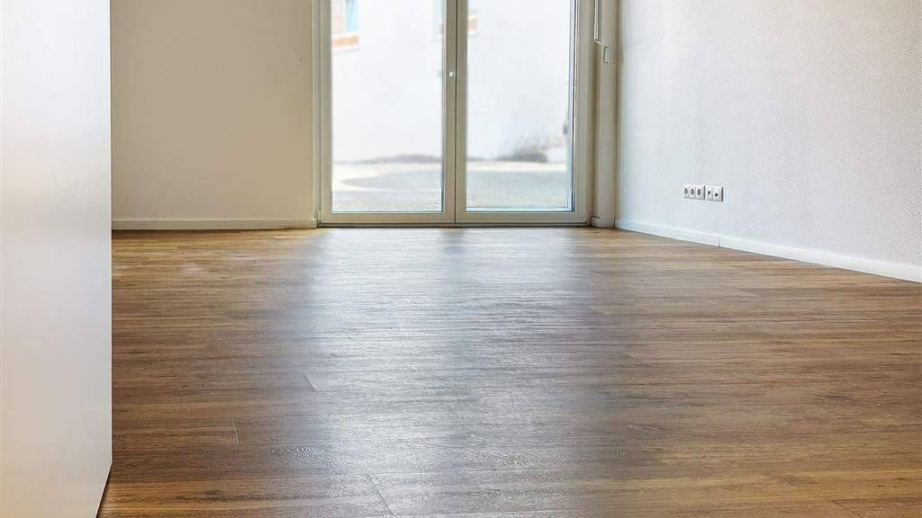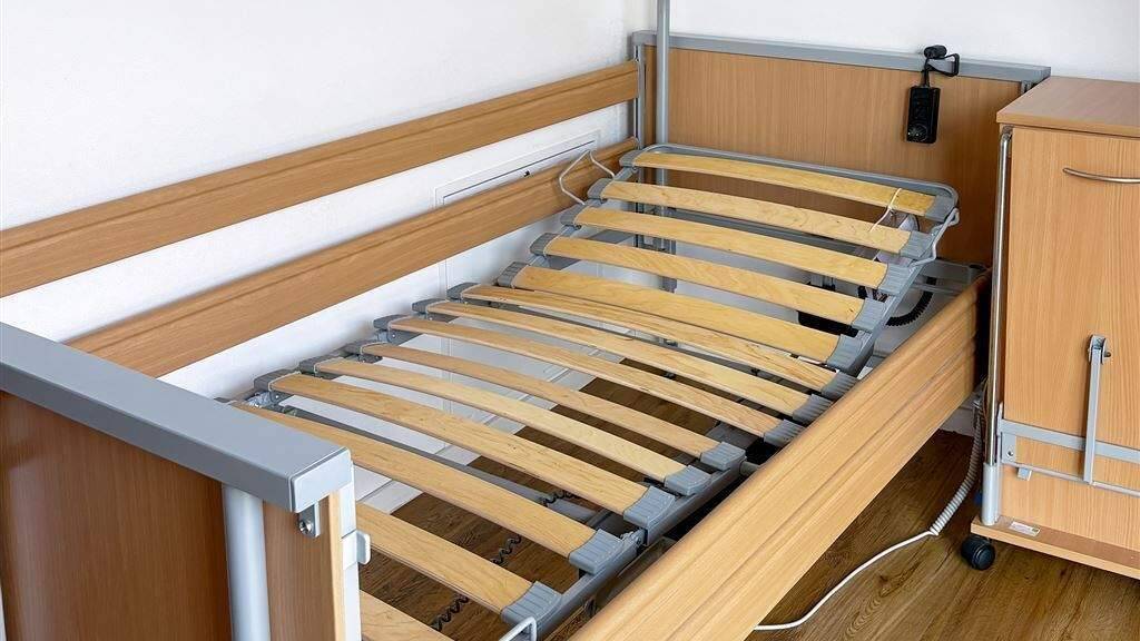 Der Wohn- und Schlafbereich ist großzügig geschnitten und bietet durch die bodentiefen Fenster ein angenehmes Raumgefühl. Der neue Bodenbelag ist pflegeleicht und harmoniert mit der hellen Gestaltung der Räume. Fliegengitter an den Fenstern sorgen für zusätzlichen Komfort. Ein vorhandenes Pflegebett kann bei Bedarf übernommen werden, ebenso weitere Möbel wie Schränke oder eine Kommode.