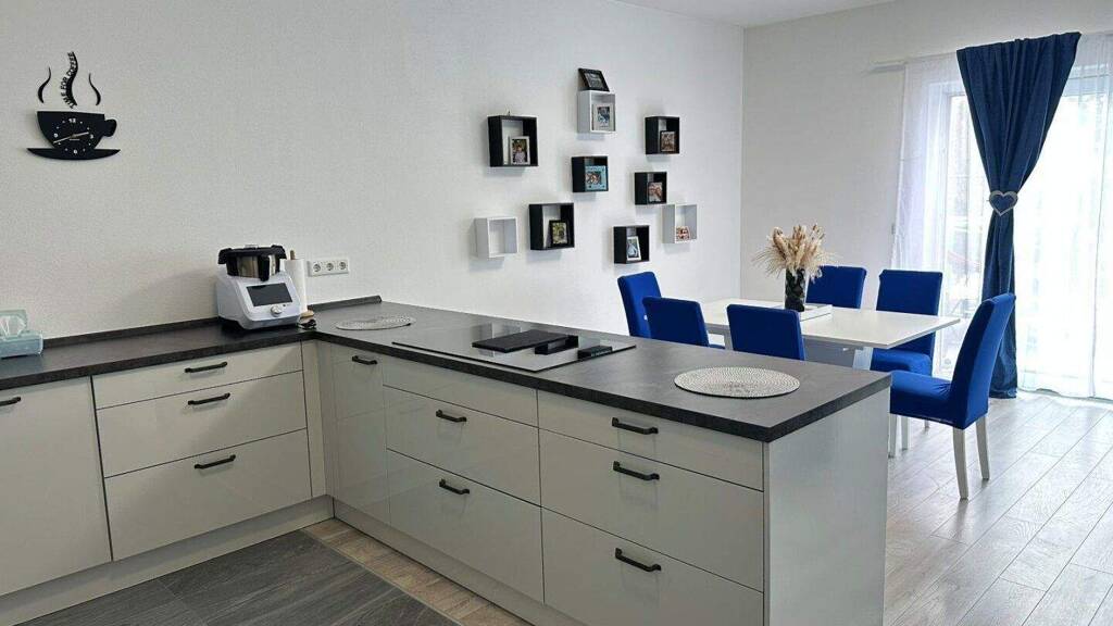 Der offene Wohn-, Ess- und Kochbereich bildet das Herzstück des Hauses. Hier genießen Sie gemeinsame Stunden mit Familie und Freunden - ob gemütlicher Abend auf der Couch oder geselliges Beisammensein am Esstisch.