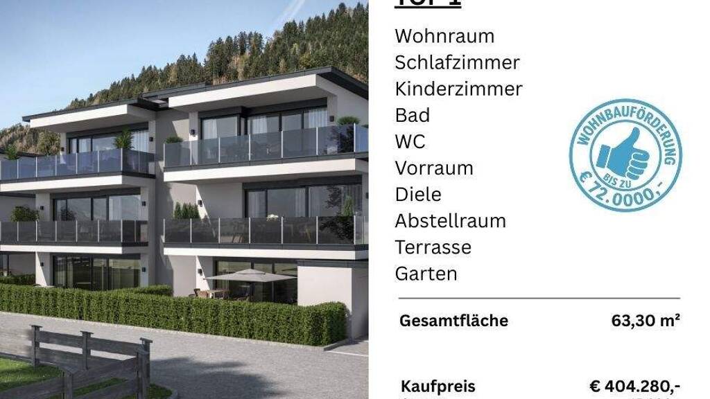Die TOP 1 Gartenwohnung in der Lendsiedlung Mittersill bietet auf 63,30 m² Wohnfläche ein ideales Zuhause für Paare, kleine Familien oder alle, die Wert auf komfortables, modernes Wohnen legen.