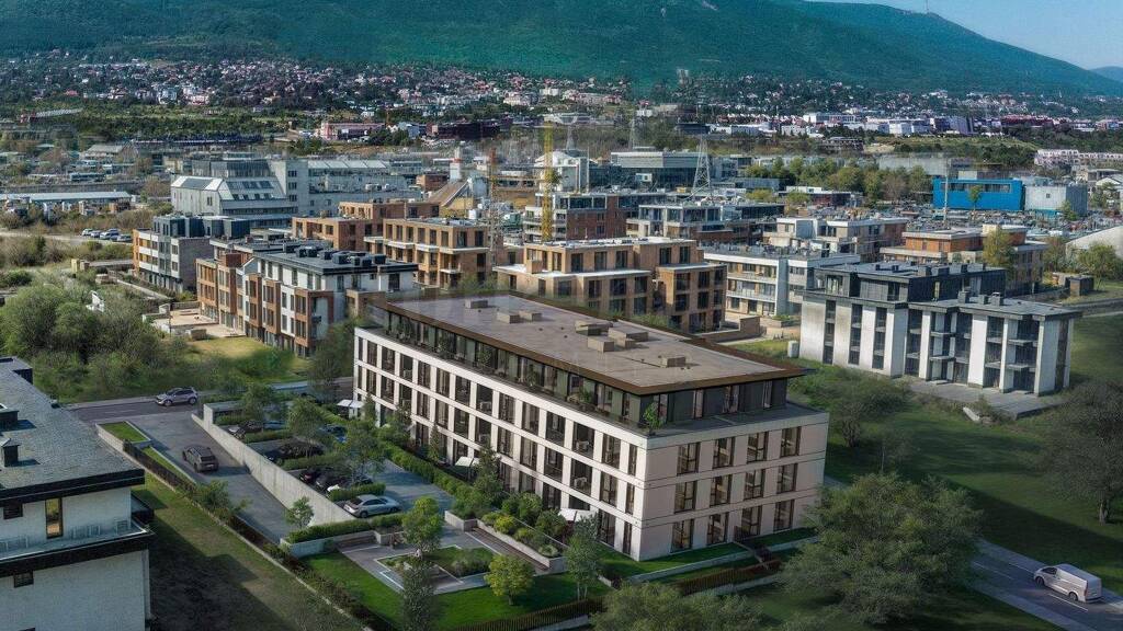 Die Architekten und der Bauträger haben sich erneut für einen Wohnkomplex mit modernstem Design entschieden, der sich durch minimalistischen Stil, klare Linien und ein harmonisches Zusammenspiel von Architektur und Umgebung auszeichnet. Die Komposition vereint Funktionalität und Ästhetik und bietet offene Räume, viel Tageslicht und moderne Materialien. Das Gebäude hat einen rechteckigen Grundriss mit einer klar definierten modularen Struktur, die für Ordnung und Rhythmus sorgt. Die Anordnung der Fassade und der Fenster schafft ein ausgewogenes Gesamtbild und bietet optimale Lichtverhältnisse sowie Ausblicke auf die Umgebung und die malerische Bergkulisse.