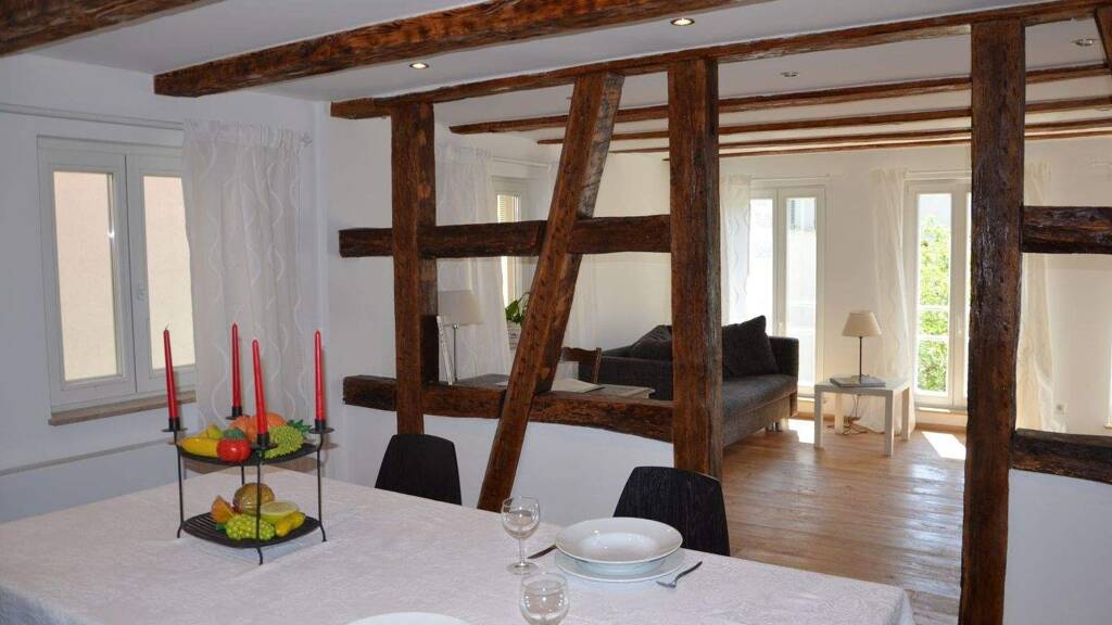 Inmitten des historischen Ortskerns erwartet Sie diese charmante 3-Zimmer-Wohnung im 1. Obergeschoss eines vollständig sanierten Wengerter-Fachwerkhauses aus dem Jahr 1793. Die Wohnung verbindet auf einzigartige Weise den Charme vergangener Zeiten mit den Annehmlichkeiten modernen Wohnens. Das Gebäude, das mit viel Liebe zum Detail restauriert wurde, bietet Ihnen nicht nur den Charme und Charakter eines historischen Fachwerks, sondern auch eine sonnige und ruhige Wohnatmosphäre. Die Lage in einem verkehrsberuhigten Bereich ohne Durchgangsverkehr sorgt für eine angenehme Ruhe, während Sie gleichzeitig die Nähe zu allen wichtigen Einrichtungen des täglichen Bedarfs genießen können. Die großzügigen, hellen Zimmer, die durch große Fenster lichtdurchflutet sind, bieten ein angenehmes Raumgefühl, das durch die erhaltenen Holzdetails und die hohe Decke noch verstärkt wird. Hier wohnen Sie in einem Zuhause, das sowohl durch seine Geschichte als auch durch seine moderne Ausstattung besticht. Ideal für Paare oder kleine Familien, die das Besondere suchen und gleichzeitig von einer ruhigen und sonnigen Umgebung profitieren möchten.